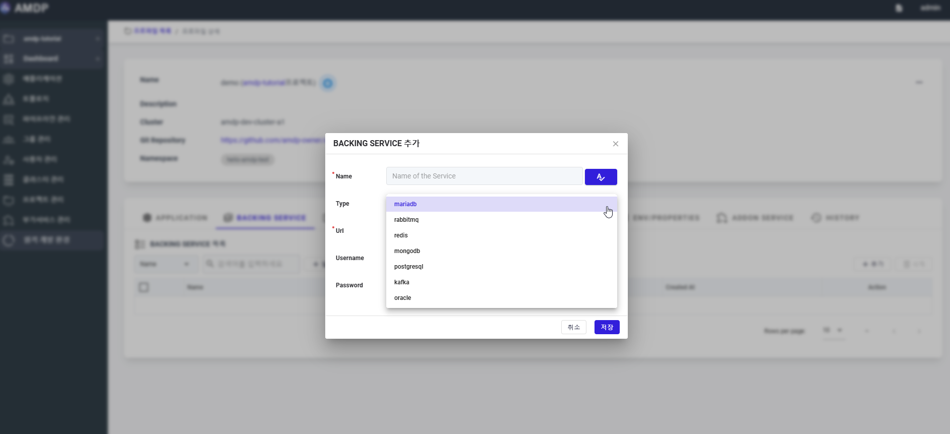To create a new backing service, access to Backing tab. On the Backing Service list screen, select button ADD: