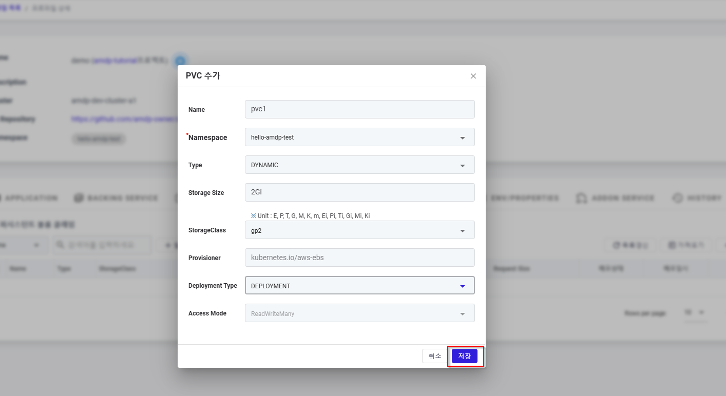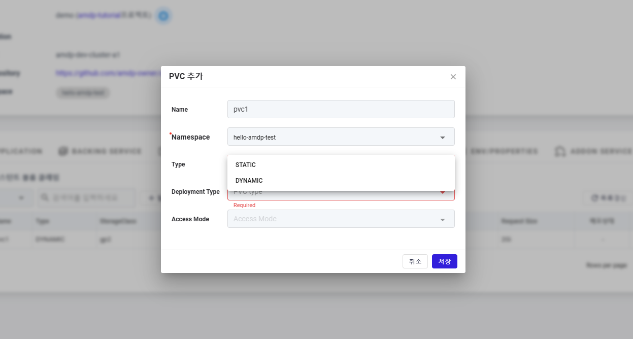 - Deployment: when the deployment type is Statefulset, the associated AccessMode is ReadWriteMany
