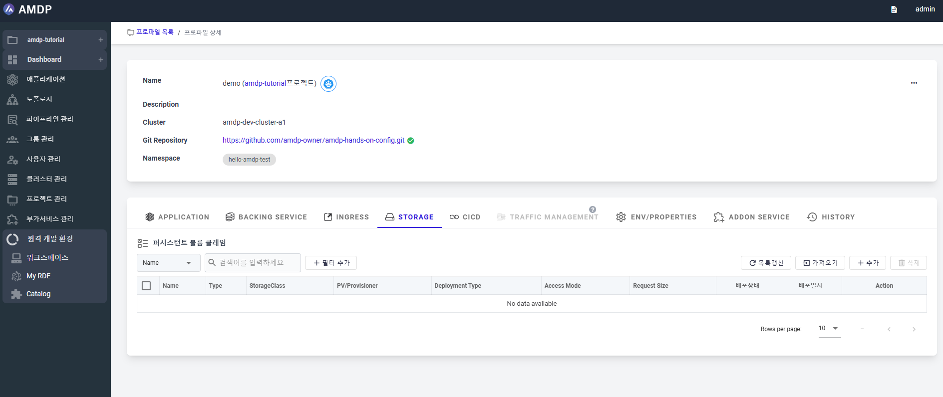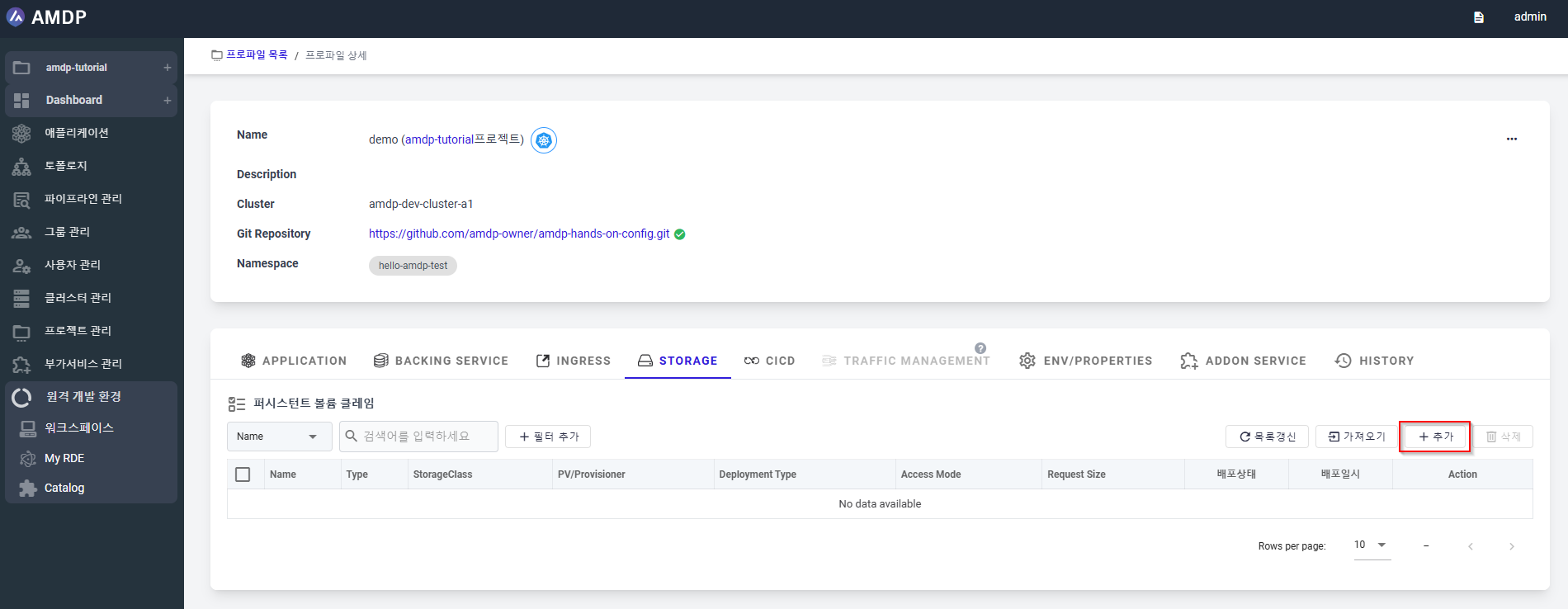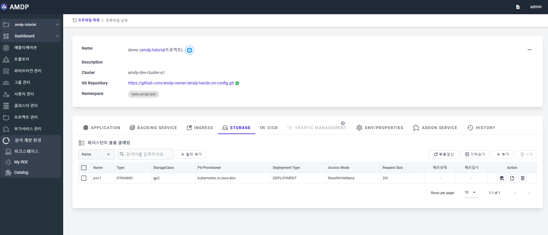 From the Profile detailed list, select tab Storage, which can be called as PVC - Persistent Volume Claim: