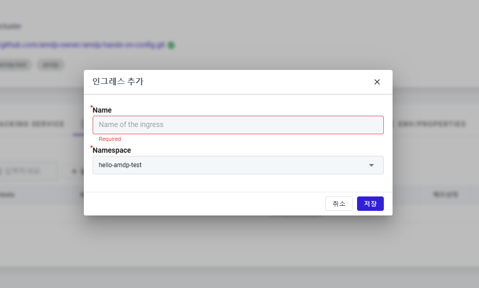 On the Ingress creation page, select the Namespace from the dropdown list and input the Ingress name: