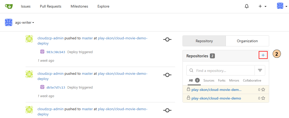 Gitea의 조직 페이지 또는 개인 대시보드로 이동합니다.