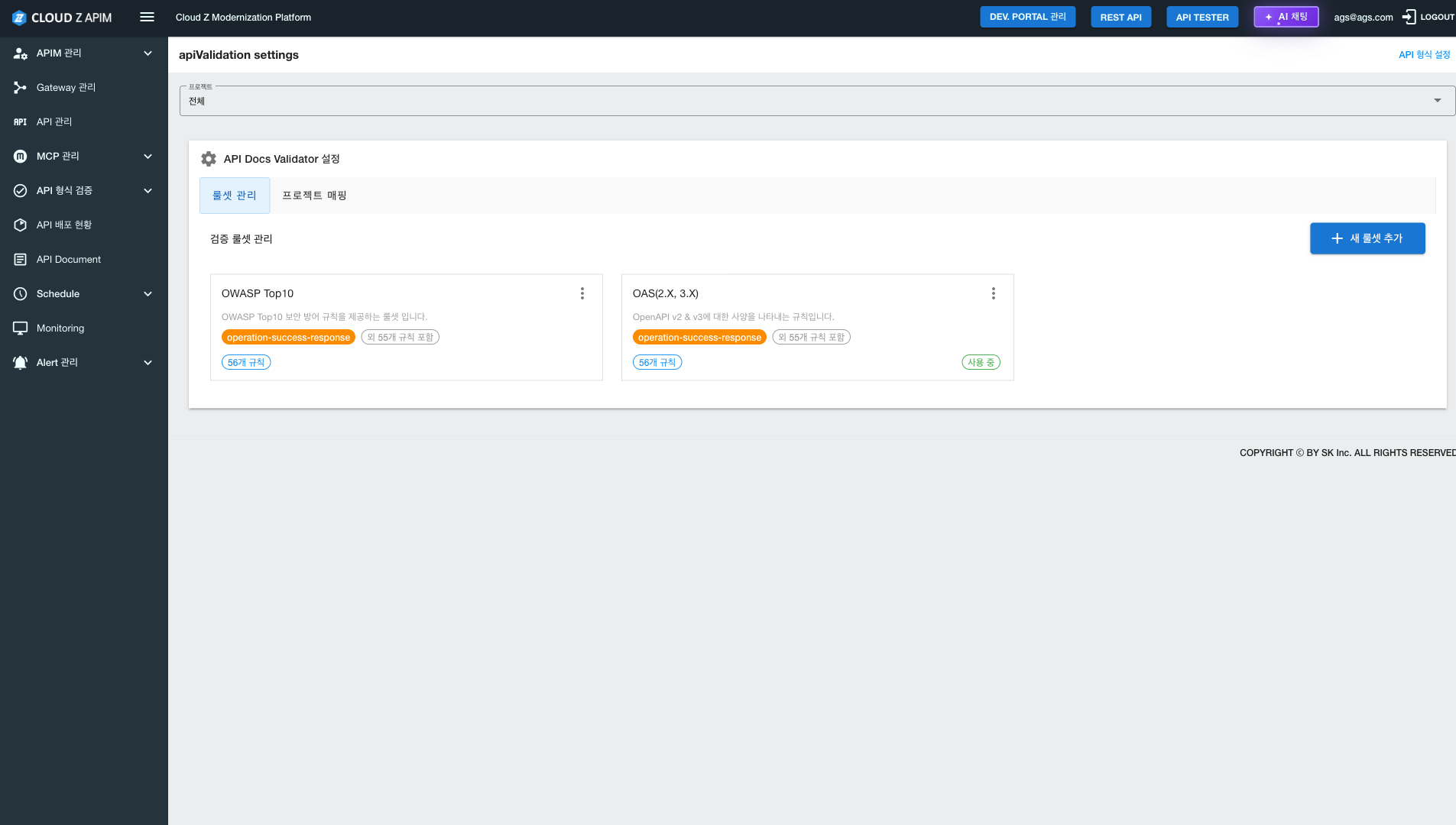 - Điều hướng đến API Management > API Format Validation từ thanh bên trái.