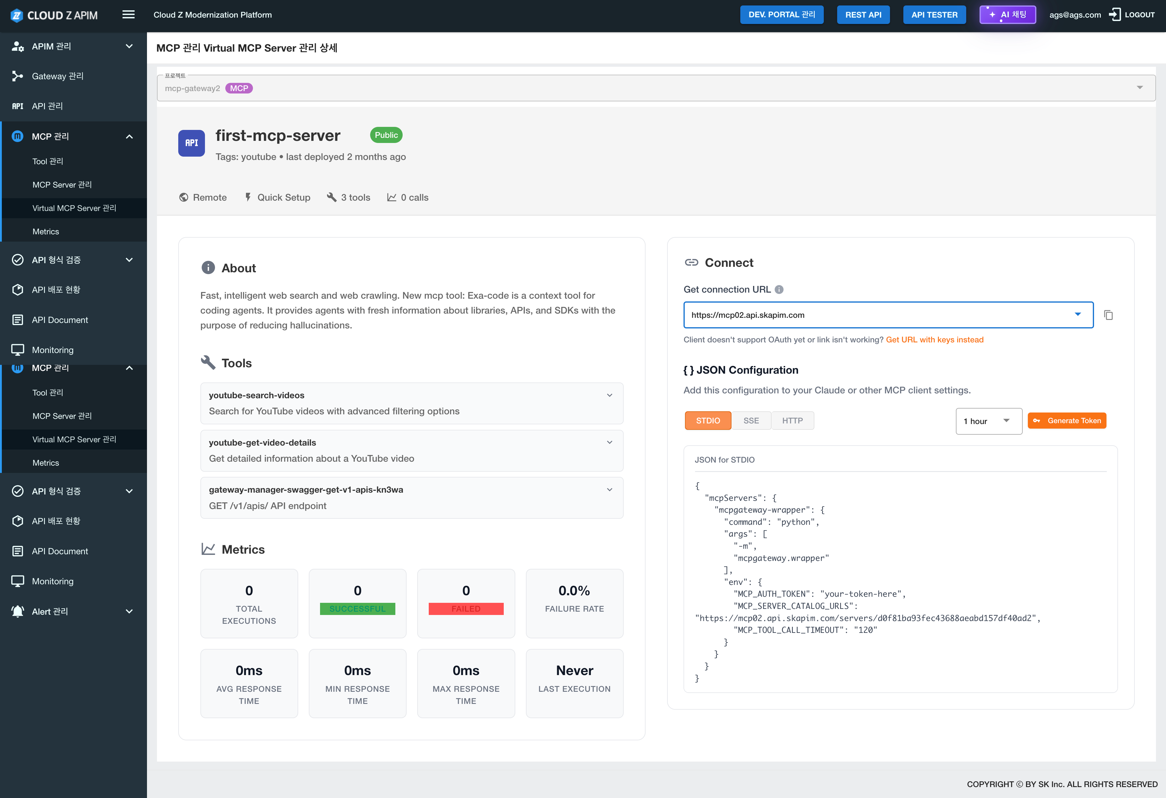- Metrics – Xem các chỉ số hiệu suất và dữ liệu giám sát liên quan đến MCP