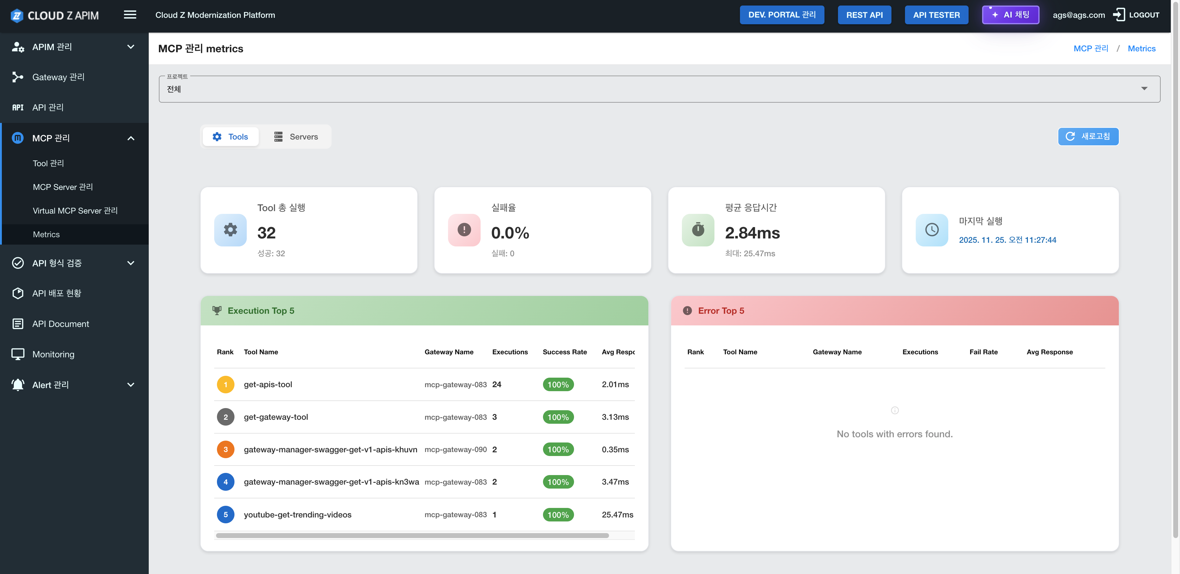 Path: Thanh bên trái → MCP Management → Metrics